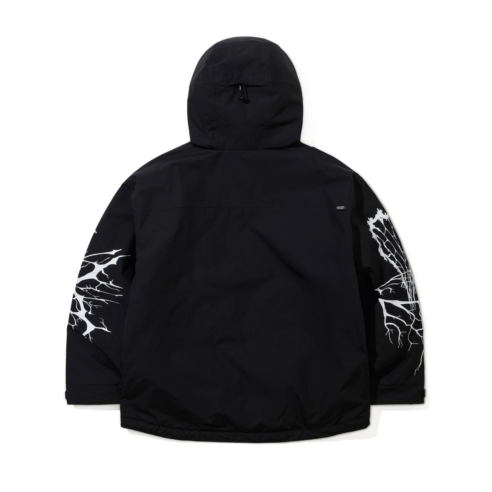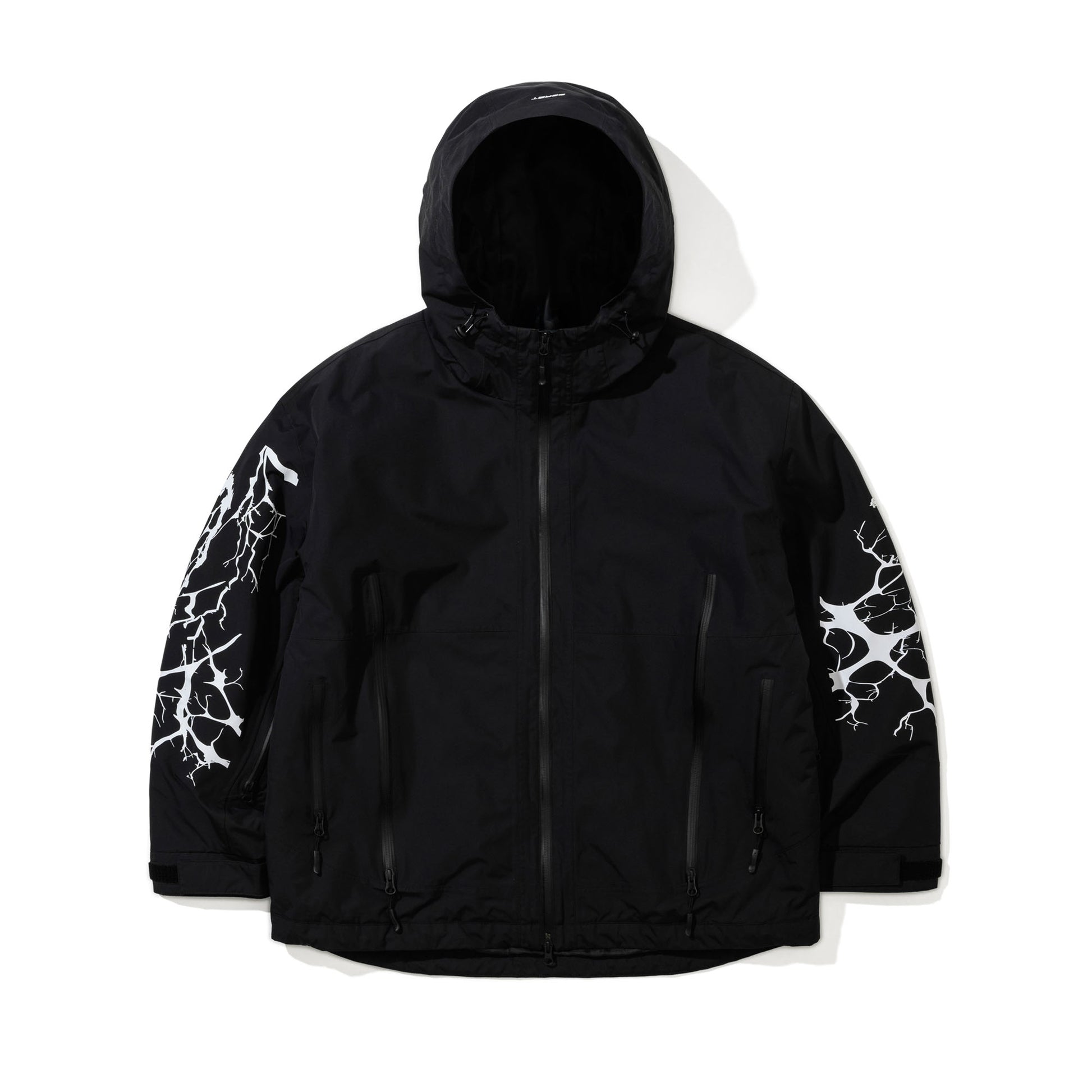 BSR2526FWJK001 DUAL ZIP SEAM SEALING HOODED JACKET INK SPLATTER BLACK